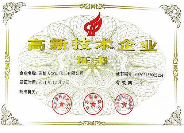 公司產品符合國家的產業(yè)政策,各種手續(xù)齊全,通過了環(huán)保、衛(wèi)生、消防、安全生產許可等各項驗收,企業(yè)化學品安全標準化三級達標驗收,并且通過了ISO9001質量管理體系認證、ISO14001環(huán)境管理體系、ISO45001職業(yè)健康管理體系,先后被有關部門授予“市級重合同守信用企業(yè)”“消費者滿意單位”“質量、計量管理先進單位”“勞動關系和諧企業(yè)”“企業(yè)免檢單位”“淄博市專精特新中小企業(yè)”“山東省化工明星單位”“山東化工發(fā)展?jié)摿?0強”“淄博市智能車間”“山東省創(chuàng)新型中小企業(yè)”“科技型中小企業(yè)”“高新技術企業(yè)”“山東省專精特新”等稱號。